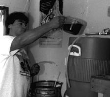 Un autre changement que vous pouvez faire est de brasser en deux ou trois paliers. Le rendement peut être amélioré par un empâtage à basse température (40°C) avec une maîsche épaisse (environ 2 litres/ kg) et maintenir ce palier durant 15 à 20 minutes. Ensuite vous ajoutez plus d’eau chaude pour atteindre la température du palier de saccharification. Vous pouvez utiliser également la méthode de la marmite sur la cuisinière pour chauffer le brassin. Utilisez le ratio habituel de litres par kilo et servez-vous de la cuisinière pour chauffer votre brassin à la température des différents paliers. Il est très important de mélanger le fond de votre marmite pendant le chauffage pour éviter la caramélisation. Une fois que le brassage est achevé, transférer délicatement dans la cuve de filtration (glacière équipée d’un collecteur par exemple) et rincer.