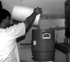 Vous pouvez soit brasser dans une cuve sur la cuisinière ou acheter une glacière de 12 à 15 litres de volume et réaliser un petit collecteur. Vous avez probablement déjà un petit récipient isotherme pour boisson qui fonctionnerait bien avec un petit collecteur comme celui présenté à l’Annexe D. L’un des avantages qu’il y a à utiliser un collecteur plutôt que de remuer le moût à travers une passoire est de vous éviter d’aérer le moût alors qu’il est chaud.